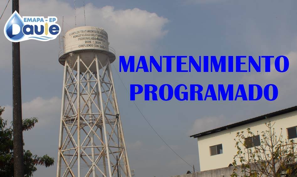 EMAPA EP DAULE, siempre pensando en el bienestar de los Dauleños, por ello obligatoriamente debemos cuidar nuestro tanque elevado de reserva alta de 300 metros cúbicos, por lo tanto, el día de mañana 22 de enero del 2020, se realizará la inspección de constatación física y evaluación de daños, para esta correcta ejecución, se suspenderá el servicio de agua potable, desde las 23h00 hasta las 4am.